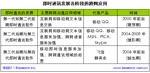 即時通訊發(fā)展各階段的跨網(wǎng)應用