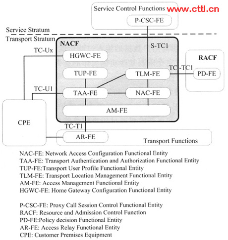 ITU-T沒有設(shè)立單獨的項目研究NACF,只在NGN的功能需求和架構(gòu)建議草案中對NACF有所提及,所以對網(wǎng)絡(luò)附著子系統(tǒng)的研究相對滯后,研究內(nèi)容主要包括:NACF的功能架構(gòu)、該功能架構(gòu)中包含的邏輯功能實體等。
