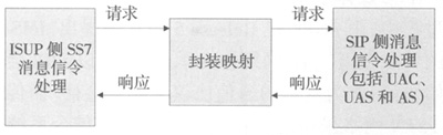 由于ISUP同SIP采用不同的消息封裝機(jī)制,ISUP采用的是二進(jìn)制編碼,而SIP采用文本編碼方式。因此,MGC收到ISUP消息后通過ISUP-MIME方式把ISUP消息內(nèi)容封裝在SIP消息體中,傳送到SIP接收端MGC再把所需內(nèi)容提取出來,從而完成對ISUP消息的透明傳送,實(shí)現(xiàn)IP網(wǎng)同PSTN網(wǎng)絡(luò)的無縫連接。具體過程見圖。