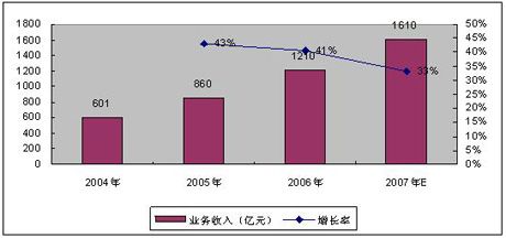 賽迪顧問預(yù)測2007年底,我國增值電信業(yè)務(wù)市場收入有望超過1600億元,增速高達(dá)33%,移動增值業(yè)務(wù)收入規(guī)模將達(dá)980億元左右,占比高達(dá)61.25%。2007年增值電信業(yè)務(wù)經(jīng)營企業(yè)的數(shù)量將會出現(xiàn)負(fù)增長,量的下降帶來質(zhì)的提升,表明增值電信業(yè)市場已經(jīng)趨于良性發(fā)展。