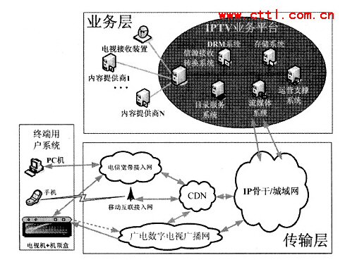 從上面的分析中可以看出。IPTV業(yè)務(wù)平臺具有明顯的NGN業(yè)務(wù)層特征,屬于NGN業(yè)務(wù)層部分;IPTV傳輸網(wǎng)絡(luò)具有明顯的NGN傳輸層特征,屬于NGN傳輸層部分;IPTV用戶終端設(shè)備具有明顯的NGN用戶終端特征。屬于NGN用戶終端部分。