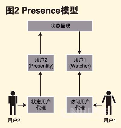 Presence用以傳達用戶狀態(tài)以及用戶通過一組設備進行通信的能力,如:聯(lián)機、忙碌、離開、脫機等狀態(tài)。這些狀態(tài)信息反映出與該用戶與其他用戶實現(xiàn)通信的可能性。