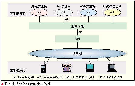 經(jīng)過(guò)多年的探索,業(yè)界取得共識(shí)網(wǎng)絡(luò)演進(jìn)必須基于業(yè)務(wù)驅(qū)動(dòng)的策略。必須指出的是,雖然基于SIP技術(shù)的IMS支持的業(yè)務(wù)從語(yǔ)音業(yè)務(wù)擴(kuò)展到了寬帶多媒體業(yè)務(wù),然而其控制機(jī)理本質(zhì)上還是源于傳統(tǒng)電信網(wǎng),因此它最適合于提供的還是諸如VoIP、集群話音、集群視頻等實(shí)時(shí)會(huì)話型業(yè)務(wù),諸如Web、電子商務(wù)等純數(shù)據(jù)型業(yè)務(wù)并不適合由IMS提供,其他許多有前景的業(yè)務(wù),如流媒體業(yè)務(wù)、IPTV、消息類業(yè)務(wù)等的確IMS已提出或正在積極研究其提供方法,但是已有其他的非IMS提供方式。因此,切不要認(rèn)為IMS是包羅萬(wàn)象的,更確切地說(shuō),IMS是電信界提出的網(wǎng)絡(luò)融合技術(shù),考慮得更多的必然就是和傳統(tǒng)電信業(yè)務(wù)模式類似的業(yè)務(wù)。為了使IMS在未來(lái)融合的信息通信網(wǎng)絡(luò)中繼續(xù)保持其重要的地位,在積極研究擴(kuò)大IMS業(yè)務(wù)能力的同時(shí),必須研究新的體系結(jié)構(gòu)既能夠包容IMS型業(yè)務(wù),也能夠包容非IMS型業(yè)務(wù),由此形成融合的開放式的業(yè)務(wù)平面。這就是熱點(diǎn)研究之中的業(yè)務(wù)代理技術(shù),實(shí)際上就是架構(gòu)在IMS之上的綜合業(yè)務(wù)平臺(tái),如圖2所示。它至少能夠提供4大類業(yè)務(wù):IMS類業(yè)務(wù)、消息類業(yè)務(wù)、流媒體業(yè)務(wù)、Web業(yè)務(wù)以及它們的組合,也就是說(shuō),除了IMS系統(tǒng)的SIP協(xié)議和API以外,業(yè)務(wù)平臺(tái)還應(yīng)能支持其他眾多的非IMS系統(tǒng)協(xié)議和接口,由此構(gòu)成融合的業(yè)務(wù)層。IMS系統(tǒng)是其中的一個(gè)重要組成部分,擔(dān)負(fù)起通信網(wǎng)絡(luò)的融合重任。
