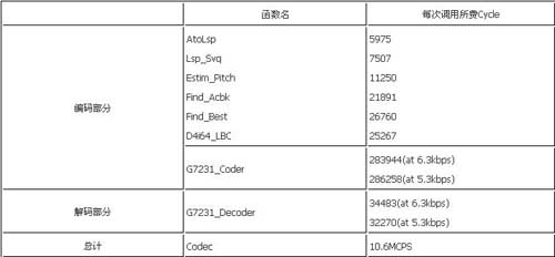 經(jīng)過C語言級(jí)和匯編級(jí)的多種優(yōu)化,最后實(shí)現(xiàn)了一路G.723.1的編解碼需要花費(fèi)10.6MCPS,整個(gè)代碼的程序空間為208K byte(程序中包括了部分c6201的庫函數(shù)),數(shù)據(jù)空間為8K byte,碼本大小20k byte,多通道的上下文數(shù)據(jù)為1.48K byte。200MHz的C6201每秒可以實(shí)時(shí)編解碼16路語音信號(hào)。所有代碼全部通過了ITU-T測試矢量的測試。表1是各主要模塊的運(yùn)算量。