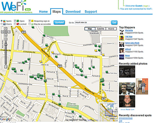 WeFi網(wǎng)站上的熱點(diǎn)地圖