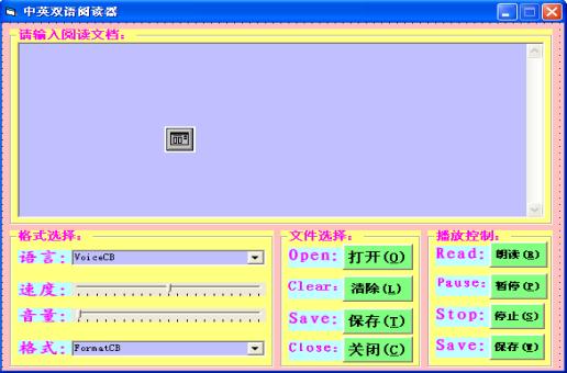 如前所述,Microsoft Speech SDK5.1不能真正地進(jìn)行中英文混合文本的朗讀。我設(shè)計(jì)的中英文混讀程序就要實(shí)現(xiàn)真正地進(jìn)行中英文混合文本的朗讀。該程序利用Microsoft