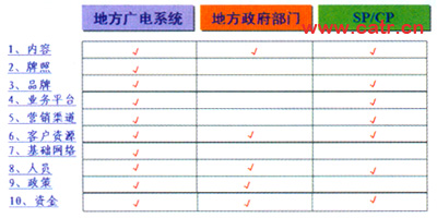 在這種模式下,固網(wǎng)公司主要與政府部門和SP/CP進(jìn)行合作。相應(yīng)的推廣方式是以農(nóng)村信息化和黨員遠(yuǎn)程教育為切入點(diǎn),主要內(nèi)容為農(nóng)業(yè)科技信息、黨政信息、文化資訊。同時(shí)以SP/CP為主,提供VOD內(nèi)容,以提高用戶對(duì)IPTV接受程度,擴(kuò)大用戶規(guī)模。這種模式下,廣電經(jīng)營數(shù)字電視,固網(wǎng)經(jīng)營寬帶增值服務(wù),兩者合作程度小,主要是實(shí)現(xiàn)終端(電視)的公用。內(nèi)容供應(yīng)者擁有最大主動(dòng),固網(wǎng)主要提供通道。固網(wǎng)公司的最大收獲是將寬帶由電腦(臥室)拓展至電視(客廳)。