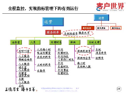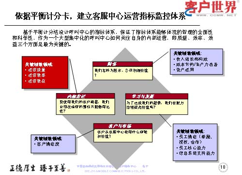 第一,是依據(jù)平衡計(jì)分卡原理,建立了客服中心運(yùn)營指標(biāo)監(jiān)控體系,以實(shí)現(xiàn)呼叫中心的規(guī)模化經(jīng)濟(jì)運(yùn)營。