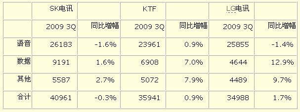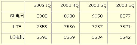 韓國(guó)三大移動(dòng)通信公司ARPU(平均每用戶值)比較