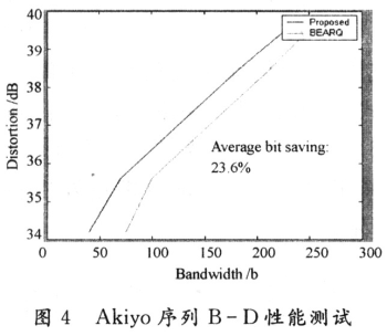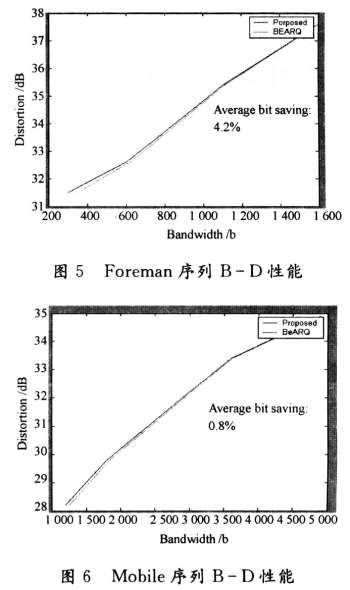 針對(duì)上節(jié)提出的重發(fā)機(jī)制和算法原理,為了評(píng)估方便,不失一般性,在實(shí)驗(yàn)中假設(shè)最大重傳次數(shù)為1。從上文可知,允許重傳次數(shù)越多,則對(duì)同樣的終端接收失真而言,BEARQ機(jī)制從B-D性能來(lái)看也就會(huì)越差,而這里設(shè)計(jì)的重發(fā)機(jī)制相對(duì)于BEARQ的B-D性能提高也就越明顯。