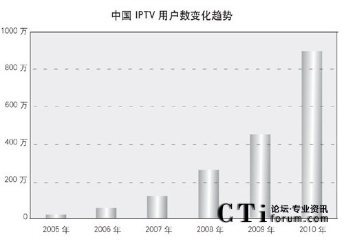 “截至2009年12月底,我國(guó)IPTV用戶數(shù)達(dá)到近470萬(wàn)。其中,中國(guó)電信達(dá)到362萬(wàn),中國(guó)聯(lián)通在50萬(wàn)左右,杭州華數(shù)共發(fā)展用戶56萬(wàn)。”。他預(yù)計(jì):“2010年中國(guó)IPTV用戶數(shù)有望達(dá)到900萬(wàn),中國(guó)電信依舊是發(fā)展主力!盜n-Stat(中國(guó))分析師張強(qiáng)也認(rèn)為我國(guó)目前已有400多萬(wàn)IPTV用戶,因?yàn)樵凇?009年年初,就已經(jīng)達(dá)到300萬(wàn)了”。