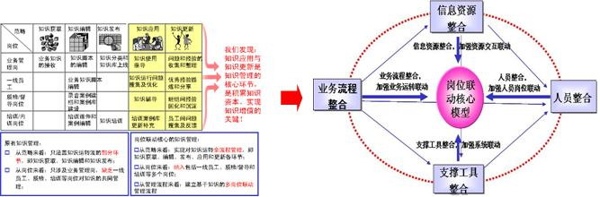 試點工作三:崗位聯(lián)動 2007年,重慶移動客服中心針對知識管理現(xiàn)狀進行了“崗位聯(lián)動”子項目試點。當(dāng)時的知識管理現(xiàn)狀僅限于業(yè)務(wù)管理部門收集、匯總客戶和前臺員工所需要的原始業(yè)務(wù)信息,并進行整理;同時關(guān)注和收集各類業(yè)務(wù)通告,并擬定或優(yōu)化相應(yīng)的業(yè)務(wù)流程,但隨著業(yè)務(wù)規(guī)模及復(fù)雜化程度的提高,項目組發(fā)現(xiàn)客戶服務(wù)中心作為關(guān)鍵的服務(wù)窗口,亟待通過構(gòu)建適應(yīng)行業(yè)發(fā)展的高效知識管理體系優(yōu)化整體工作效能。