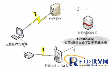第3步:后臺(tái)系統(tǒng)將用戶刷卡信息處理生成憑證信息之后將此憑證信息發(fā)送給短信/彩信網(wǎng)關(guān)(此憑證信息形式可以為經(jīng)過加密了的短信或彩信,也可以為二維碼等可以驗(yàn)證的形式)。