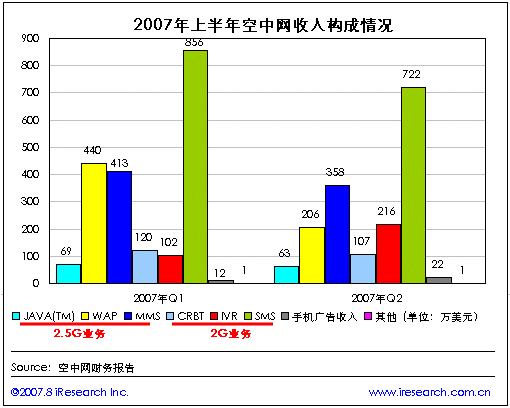 對(duì)此,艾瑞認(rèn)為,空中網(wǎng)Q2業(yè)績(jī)下滑主要原因是由于中國(guó)移動(dòng)2007年5月開(kāi)始實(shí)施一系列新政策,包括當(dāng)手機(jī)用戶下載WAP產(chǎn)品時(shí)顯示GPRS服務(wù)費(fèi)用提醒,以及將空中網(wǎng)和其它第三方WAP服務(wù)提供商從中國(guó)移動(dòng)定制手機(jī)內(nèi)置菜單中刪除。