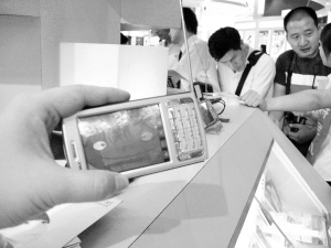 該名管理人員向記者表示,由于深圳還沒有信號(hào),因此在會(huì)場內(nèi)的手機(jī)電視依賴放置在展臺(tái)內(nèi)一角的發(fā)射終端獲取信號(hào)。“目前廣州已經(jīng)有信號(hào),但信號(hào)將逐步覆蓋至全省!彼d奮地向記者表示。據(jù)了解,該電視手機(jī)市場售價(jià)可能在2000元左右。