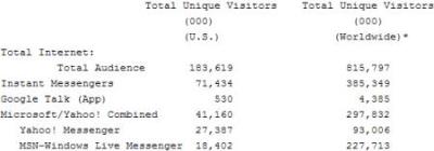 comScore最近放出的一份IM統(tǒng)計(jì)結(jié)果如下(單位為千):