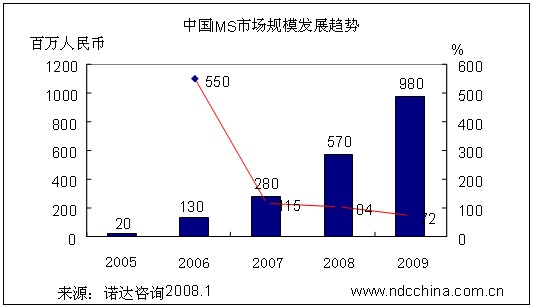 諾達咨詢認為,隨著中國3G市場的啟動,IMS市場也將呈高速發(fā)展的態(tài)勢。到2009年,國內IMS市場的總規(guī)模將達到9.8億元(僅指IMS體系的業(yè)務層和控制層)?傮w而言,電信運營商在IMS業(yè)務層和控制層上的投資在電信總體投資的比例將長期處于一個比較低的水平,主要用于與現(xiàn)存網絡互聯(lián)互通的網關設備的投資。隨著R5開始部署,有線與無線業(yè)務的融合進入實質階段,并將在2009年以后呈現(xiàn)超高速增長的態(tài)勢。