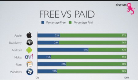 圖:為各大手機應用商店免費應用比例