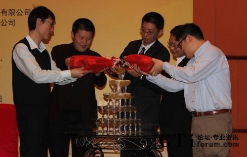 北京方正世紀信息系統有限公司是比利時巴可公司國內代理商,其產品總監(jiān)黃濤介紹了巴可的大屏顯示設備,并表示寬屏的普及是會議系統發(fā)展的必然趨勢;北京凱新創(chuàng)達科技發(fā)展有限公司總經理周曉東向媒體介紹了H-Mix系列插卡式高標混合矩陣;北京昆侖凱通通信科技有限公司總經理趙昱介紹了多媒體會議室集成解決方案;捷視飛通科技有限公司總經理季海蛟介紹了公司在視頻會議、高端數字視頻監(jiān)控、數字音頻、GPS和GIS應用系統等領域取得的成績;銳迪訊通訊技術發(fā)展(北京)有限公司中國區(qū)總經理李文介紹了會議應用和辦公應用功能融合的V240高清桌面終端,并對3G視訊應用服務表示出了極大的信心;思科系統中國有限公司統一通信事業(yè)部業(yè)務拓展經理李吳健表示思科重視視頻會議流量、帶寬問題,還認為視頻會議最終會走出會議室,向多行業(yè)多用途發(fā)展。隨后,五位嘉賓共同倒?jié)M香檳塔,為今年的全國巡展拉開了帷幕。