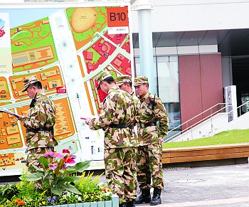 世博哪里好玩,先上中國(guó)電信的信息亭看看。圖為旅游團(tuán)隊(duì)進(jìn)入園區(qū),先奔中國(guó)電信信息亭。