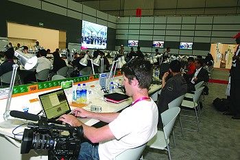 世博的主新聞中心一開(kāi)門(mén)便受到媒體的“熱捧”。中國(guó)電信的后臺(tái)信息系統(tǒng)顯示,世博主新聞中心的數(shù)據(jù)量一直居高不下,因?yàn)橛浾哒χ米烂嫔系?00M有線寬帶高速上網(wǎng)、收發(fā)稿件、傳送采訪的視頻。在世博主新聞中心一樓記者工作大廳,想在300個(gè)坐席里找個(gè)空位可不是容易的事情。