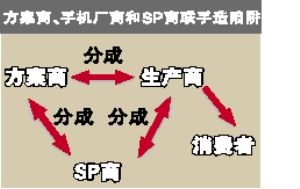中國移動2007年1月出臺的《移動夢網(wǎng)SP合作管理辦法》規(guī)定,禁止SP和終端廠家直接進行終端內(nèi)置業(yè)務(wù)的合作。但是,大部分國產(chǎn)手機生產(chǎn)環(huán)節(jié)當(dāng)中,都有一個重要的角色,那就是手機方案商。方案商主要負責(zé)提供整套手機設(shè)計方案,包括研發(fā)手機主板、設(shè)計操作系統(tǒng),他們把帶有操作系統(tǒng)的主板賣給手機生產(chǎn)商,生產(chǎn)商再采購?fù)鈿、液晶屏等部件組裝成成品手機。