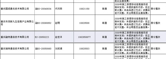 經(jīng)四川省工商行政管理局官方網(wǎng)站查詢發(fā)現(xiàn),成都融特通信技術(shù)有限公司注冊(cè)人資本為100萬,法人為趙世洋。注冊(cè)信息顯示,成都融特通信技術(shù)有限公司及其關(guān)聯(lián)公司——重慶融特通信技術(shù)有限公司,其主營業(yè)務(wù)為通信產(chǎn)品的技術(shù)開發(fā)。而搜狐IT獲得的一份資料表明,成都融特通信技術(shù)有限公司目前仍然是中國聯(lián)通廣東、重慶、四川等省市的增值業(yè)務(wù)提供商,并于2009年第三季度因違規(guī),被中國聯(lián)通處罰,要求其進(jìn)行整改。