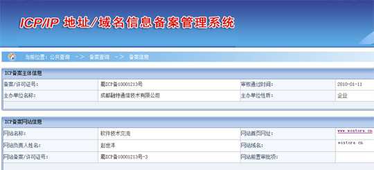 從目前看,WoStore相關(guān)域名可能同樣無法幸免,盡管目前wostore.cn已被用作中國聯(lián)通“WoStore應(yīng)用商店”官網(wǎng)域名,并在版權(quán)區(qū)標(biāo)注為“中國聯(lián)通版權(quán)所有”,但目前域名注冊(cè)商處信息仍然顯示,wostore.cn所有者為“成都融特通信技術(shù)有限公司”。工信部備案資料顯示, wostore.cn于今年1月11日通過審核備案,目前網(wǎng)站負(fù)責(zé)人同樣是成都融特通信技術(shù)有限公司。