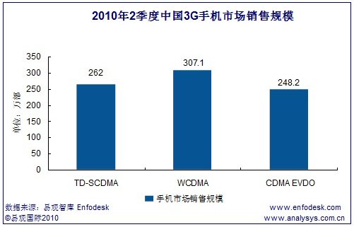 2010年二季度3G手機終端銷量達817.3萬部