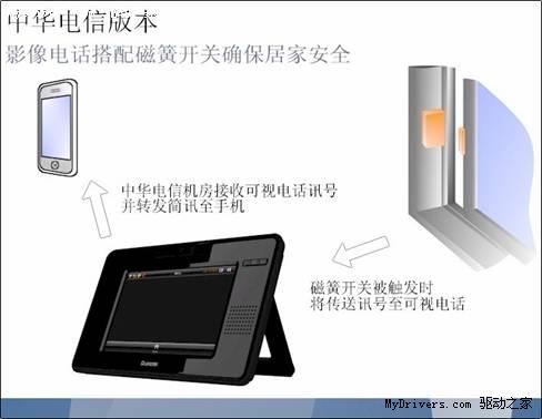 除多媒體服務(wù),AMOR8210內(nèi)建之千里眼服務(wù)更突破業(yè)界標(biāo)準(zhǔn)使其與磁簧開關(guān)整合提供居家安全嶄新服務(wù)。當(dāng)磁簧開關(guān)被觸發(fā)告警時(shí),AMOR8210攝影鏡頭將開啟錄像功能并上傳畫面且同步發(fā)送簡訊至行動(dòng)電話通知使用者接著使用者可透過3G手機(jī)觀看錄像檔案或直接撥接AMOR8210進(jìn)行實(shí)時(shí)監(jiān)控。