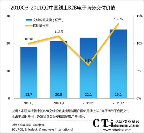 2011年第2季度線上B2B市場(chǎng)交付價(jià)值達(dá)25.1億元