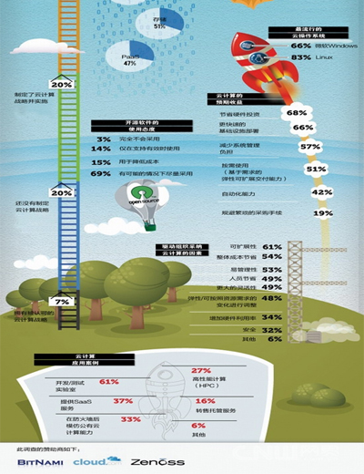《2011云計(jì)算發(fā)展前景調(diào)查報(bào)告》的目標(biāo)在于收集企業(yè)用戶中使用虛擬化和云計(jì)算技術(shù)的信息,有助于公眾了解云計(jì)算技術(shù)及其服務(wù)的演進(jìn)。這份調(diào)查報(bào)告的結(jié)果來自2011年第二季度對BitNami、Cloud.com和Zenoss開源與系統(tǒng)管理社區(qū)中500多位用戶的調(diào)查。其目的是想看清楚云計(jì)算技術(shù)的使用趨勢,并對部署虛擬基礎(chǔ)設(shè)施提供參考。