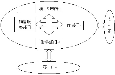 CRM項(xiàng)目小組由公司內(nèi)部各部門及外部人員共同組成。一般來講,項(xiàng)目小組應(yīng)該包括高層領(lǐng)導(dǎo)(一般為副總)、銷售和營銷部門的人員、IT部門的人員、財(cái)務(wù)人員,還要包括所有最終用戶的代言人。他們作為CRM系統(tǒng)實(shí)施的輸入部分。