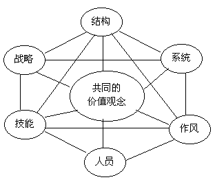 按照麥肯錫以及科特勒的綜合觀點,前面三個要素戰(zhàn)略、結構和系統被認為是最成功的硬件;后面四個要素作風、人員、技能和共同的價值觀念是軟件。每個組織都和總體環(huán)境的某個部分相互影響,相互作用,并且把這一部分成為相關環(huán)境,并且指出最能適應環(huán)境的公司必將獲得成功。