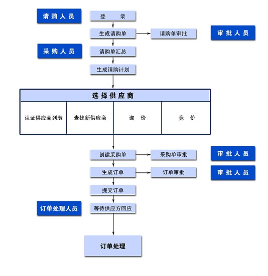 網(wǎng)上采購系統(tǒng)采用Java技術和模塊化的體系結構,集成了公司管理、目錄管理、請購單管理、詢價管理、采購單管理、訂單管理、審批管理和競拍管理等功能模塊,覆蓋企業(yè)采購的各個環(huán)節(jié),強大靈活的采購流程,用戶可以根據(jù)自身的部門設置和業(yè)務流程自行定義和修改采購及審批流程,真正實現(xiàn)采購流程的電子化。