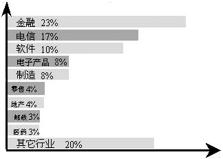 CRM的應(yīng)用已經(jīng)覆蓋了幾乎所有的行業(yè),典型行業(yè)客戶應(yīng)用案例和效果為其他企業(yè)采取行動(dòng)提供了樣板。這些行業(yè)包括銀行、保險(xiǎn)、證券、基金、電信、郵政、制造、醫(yī)藥、零售、地產(chǎn)、IT、傳媒、交通和物流等。在整個(gè)市場中,主要行業(yè)的占有率情況參見下圖: