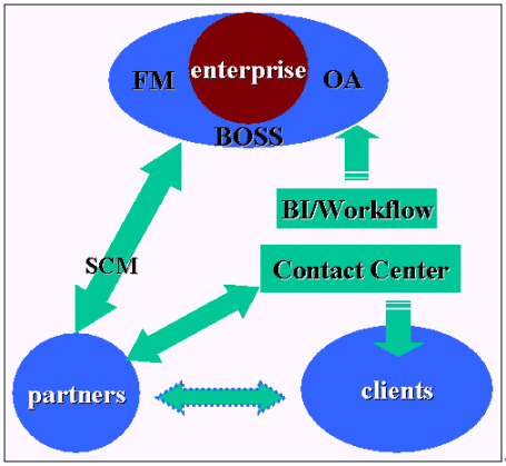 根據(jù)上面的分析SCN新一代客戶聯(lián)絡(luò)中心建成后將具備較強的雙向交互能力,為了更好的統(tǒng)一和完善整個客戶關(guān)系管理框架,我們希望盡可能的將企業(yè)內(nèi)外的所有溝通都綜合到一個平臺,他融合了企業(yè)的主頁,企業(yè)的客戶聯(lián)絡(luò)中心,企業(yè)的內(nèi)部辦公自動化網(wǎng),企業(yè)資源管理系統(tǒng)等這樣客戶只需要通過這樣的一個平臺便可解決所有問題,或者說是客戶、員工等企業(yè)相關(guān)的任何個體之間的交流可以有多個表現(xiàn)形式如電話,電郵,網(wǎng)絡(luò),辦公自動化系統(tǒng),短信等等但最終都轉(zhuǎn)移到同一個平臺上來實現(xiàn)交換。為什么需要這樣呢?只有這樣才能最好的實現(xiàn)統(tǒng)一信息。信息統(tǒng)一了,我們就可以建立客戶資訊的數(shù)據(jù)倉庫了,有了統(tǒng)一的數(shù)據(jù)信息,任何基于客戶的分析、細(xì)分都可以實現(xiàn),而客戶的任何遺留痕跡如嗜好,習(xí)慣,忠誠度,消費意愿等等都可以方便的提取,最后通過商業(yè)智能輔助進(jìn)行客戶生命周期管理、市場營銷、財務(wù)管理和戰(zhàn)略決策等。形成一個良性循環(huán)的客戶關(guān)系管理生態(tài)鏈。由于客戶關(guān)系管理將涉及到各部門之間的協(xié)調(diào)和合作,業(yè)務(wù)模式變革等眾多方面,在此不作詳細(xì)的描敘,本人將在另外的文章中專門來探討客戶關(guān)系管理中長遠(yuǎn)規(guī)劃的問題。