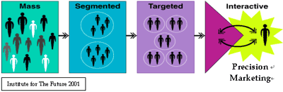 首先,互聯(lián)網(wǎng)的出現(xiàn)改變了營銷的概念,為大規(guī)模定制創(chuàng)造了空前的機遇。隨著富裕而又有辨別能力的中產(chǎn)階級的逐漸壯大,預(yù)先營銷的期望以及針對個人的解決方案日益成為一種標(biāo)準(zhǔn)。從記住他們的行為&偏好并為他們發(fā)送相關(guān)產(chǎn)品信息 (例如Amazon.com) …到幫助他們得到自己理想中的產(chǎn)品 (例如Dell.com,) ,CRM觀念的關(guān)鍵之處就在于為客戶提供符合他們需求的產(chǎn)品/服務(wù)而不是向他們推銷你的東西;ヂ(lián)網(wǎng)使你能夠與客戶建立學(xué)習(xí)關(guān)系,從銷售轉(zhuǎn)移到解決問題。互聯(lián)網(wǎng)上的CRM已經(jīng)上升到了另一個高度。
