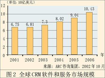 單單這還不是惟一能夠說(shuō)明問(wèn)題的。早在2002年,F(xiàn)orrester研究公司就聲稱(chēng),來(lái)自CRM的收入將從428億美元增長(zhǎng)到738億美元。AMR研究公司同樣預(yù)測(cè),這個(gè)領(lǐng)域會(huì)不斷增長(zhǎng)。AMR的調(diào)查表明,91%的公司會(huì)在這方面增加開(kāi)支,預(yù)計(jì)總開(kāi)支會(huì)增長(zhǎng)8%。值得一提的是,AMR所指的這一塊市場(chǎng)是“客戶(hù)管理”,而不是較為傳統(tǒng)的CRM,這說(shuō)明CRM應(yīng)用軟件的作用發(fā)生了轉(zhuǎn)變。