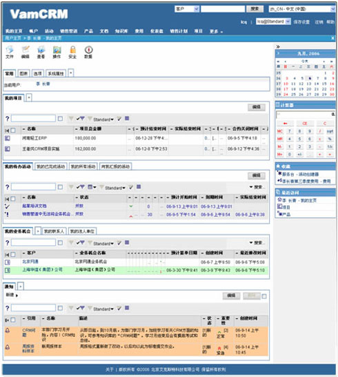 VamCRM提供專業(yè)的項目管理模塊,支持項目范圍管理、時間管理、資源管理、質(zhì)量管理、成本管理。支持以銷售合約為驅(qū)動、過程清晰、全程受控的項目管理方式為客戶交付產(chǎn)品和服務(wù)。VamCRM融入成熟的項目管理方法和成功的實踐經(jīng)驗,從整體上對項目進(jìn)行規(guī)劃、組織、執(zhí)行、控制,使企業(yè)可以更加優(yōu)質(zhì)地為客戶提供長期的服務(wù)。項目創(chuàng)建后,VamCRM系統(tǒng)會自動生成一個與當(dāng)前項目相匹配的文件夾,為項目執(zhí)行過程中產(chǎn)生的交付物或項目的有關(guān)文檔提供統(tǒng)一的存檔位置;項目全程融合項目管理的方法,分里程碑管理項目活動和交付物,實時統(tǒng)計項目的關(guān)鍵數(shù)據(jù),并且里程碑及所屬活動和交付物等都可分狀態(tài)量化標(biāo)識,對項目進(jìn)展做到實時監(jiān)控,避免了在項目實施中的“救火”行動和盲目發(fā)展。也可自動關(guān)聯(lián)記錄并統(tǒng)計所有項目進(jìn)展過程中發(fā)生的預(yù)算與費(fèi)用,實現(xiàn)項目費(fèi)用清晰可控。伴隨著項目的進(jìn)程,可以記錄所有在項目執(zhí)行過程中相關(guān)的聯(lián)系人、文檔、備忘錄等數(shù)據(jù),形成完整的項目內(nèi)容集合。項目中還包括基于項目的論壇,供項目組成員就項目的相關(guān)問題進(jìn)行在線交流,同時,項目管理全程與企業(yè)高效協(xié)同的業(yè)務(wù)流程無縫集成,能夠使企業(yè)的相關(guān)部門以項目為導(dǎo)向,集中所有資源高效協(xié)同服務(wù),大大降低項目執(zhí)行風(fēng)險。