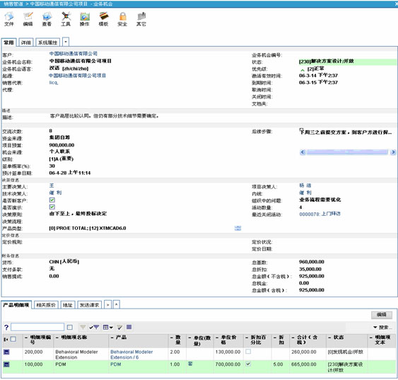具體來講,企業(yè)的銷售人員通過VamCRM定義的銷售管道實現(xiàn)對銷售工作的流程化跟進(jìn)和管理;玖鞒淌牵菏紫蠕N售人員通過各種途徑獲得客戶信息,與之溝通聯(lián)系,有業(yè)務(wù)進(jìn)一步發(fā)展的可能后形成相應(yīng)的銷售線索,便開始切入銷售管道。然后,通過相關(guān)業(yè)務(wù)活動與客戶進(jìn)行接觸,支持業(yè)務(wù)的不斷發(fā)展,隨后,形成業(yè)務(wù)機(jī)會。若該項業(yè)務(wù)進(jìn)入實質(zhì)性的需求分析及合同的前期談判階段,即升級為系統(tǒng)的報價階段,可以對客戶的需求進(jìn)行報價、出具解決方案。接著,開展一系列商務(wù)公關(guān)活動,以雙方都可接受的實現(xiàn)方式簽訂合同,即在系統(tǒng)里形成銷售訂單。最終促進(jìn)形成發(fā)貨單,進(jìn)入實施、合同執(zhí)行、收款等相關(guān)后續(xù)的環(huán)節(jié)。與此同時,所有與現(xiàn)實中同客戶合約相關(guān)的信息都可以以統(tǒng)一的形式在系統(tǒng)中存儲,并且可以在獨(dú)立銷售階段間輕松遞進(jìn)轉(zhuǎn)換,有效提高系統(tǒng)的易用性和信息統(tǒng)一的關(guān)聯(lián)程度。每一個銷售階段都隱含著不同的側(cè)重目標(biāo),從線索挖掘、銷售過程追蹤、直至交易達(dá)成,企業(yè)可以對銷售過程進(jìn)行全面過程化管理,并且各個流程之間信息高度關(guān)聯(lián)和集成統(tǒng)一。同時,VamCRM融合了經(jīng)眾多企業(yè)多年實踐證明非常有效的MEDDIC銷售方法,不但能夠使銷售流程更加順暢,更能夠幫助企業(yè)深度把握客戶需求,掌握客戶購買習(xí)慣,明顯提升銷售業(yè)績。