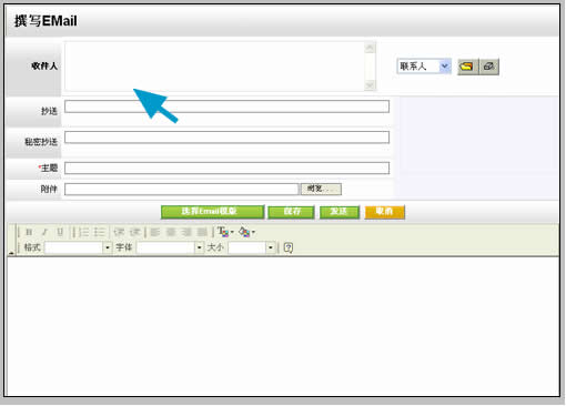 值得推薦的是它的Email字段,因?yàn)橐卓蛢?nèi)嵌了Email服務(wù)器,點(diǎn)擊聯(lián)系人email后直接調(diào)用易客CRM自身的撰寫新郵件界面,較之前面兩種CRM的方式,與郵件系統(tǒng)契合更加緊密。不足之處在于,在彈出的撰寫郵件窗口中收件人部分并沒有自動填寫該聯(lián)系人,而是以不可編輯的方式出現(xiàn),推測可能和試用版有關(guān)。如下圖: