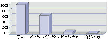 消費(fèi)者根據(jù)文化程度和職業(yè)的不同,對(duì)IP電話的認(rèn)可也不一樣,其中,學(xué)生和年輕的上班族的認(rèn)知率是最高的,這和他們的收入以及較易接受新事物有關(guān)。學(xué)生的收入較低,年輕的上班族中不少人的收入不高,同時(shí)他們也是長途電話的主要使用者之一。對(duì)于那些高收入的消費(fèi)者來說,IP電話所節(jié)省的費(fèi)用必要性不大,而很多話費(fèi)可以報(bào)銷,IP電話使用又不方便,因此他們一般不使用IP電話。而對(duì)于年齡較大的消費(fèi)者來說,IP電話的不方便使用是最主要的原因之一。圖5是個(gè)人消費(fèi)者對(duì)IP電話的使用程度比較。
