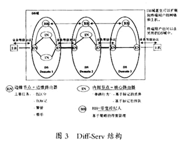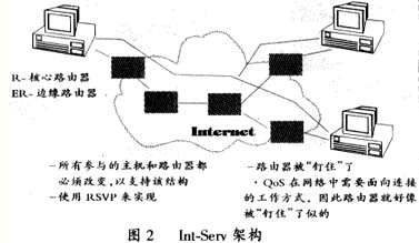 在廣域網(wǎng)上,IETF(Internet Engineering Task Force)定義了兩種IP QoS結(jié)構(gòu)——綜合業(yè)務(wù)結(jié)構(gòu)(Int-Serv )和業(yè)務(wù)區(qū)分結(jié)構(gòu)(Diff-Serv)。兩種結(jié)構(gòu)各有其特點和優(yōu)勢,目前還無法互通。