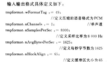 語音采集與壓縮使用Windows提供的ACM(Audio Compression Manager,音頻壓縮管理器)函數,ACM的聲明文件提供并只提供直接調用ACMAPI的功能。如果有必要直接使用低層功能,可以按照下面的步驟使用ACM API。