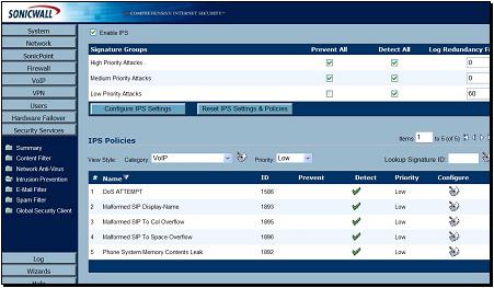 Figure 2 SonicWALL IPS GUI