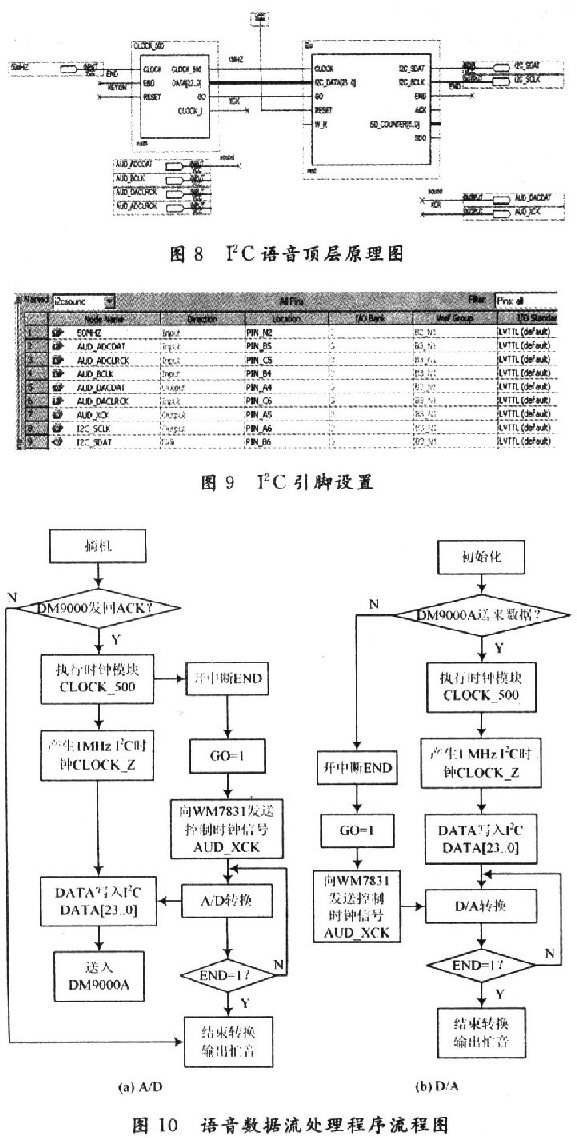 由于語音編解碼器的處理延時(shí)是影響VoIP話音質(zhì)量的因素之一,為了保證語音編解碼的實(shí)時(shí)性,軟件系統(tǒng)在控制WM8731編解碼器的編解碼同時(shí),加入了I2C語音模塊,以實(shí)現(xiàn)語音數(shù)據(jù)的實(shí)時(shí)處理。它采用自頂向下設(shè)計(jì)方法利用QuartusⅡ進(jìn)行設(shè)計(jì)。