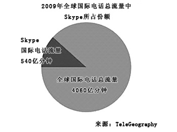 盡管全球的國際長途電話呼叫量增長在減緩,但是Skype的業(yè)務(wù)量卻急劇上升。2008年,Skype網(wǎng)內(nèi)用戶間的國際長途呼叫量的增幅高達(dá)51%,2009年這一增幅達(dá)到63%,達(dá)到540億分鐘。如今,Skype已經(jīng)成為全球最大的跨境通話服務(wù)提供商。