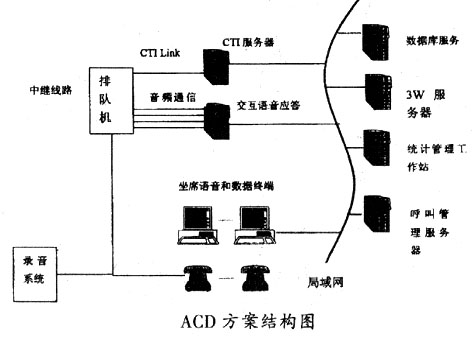 ____提供ACD方案的廠商傳統(tǒng)上是生產(chǎn)程控交換機(jī)的廠商。80年代以來,交換機(jī)廠家采取 了以下發(fā)展策略:在增強路由能力的基礎(chǔ)上開放交換機(jī)的控制接口,以標(biāo)準(zhǔn)的軟、硬件格 式提供CTI-Link,集成成熟的語音產(chǎn)品作為語音服務(wù)平臺。因此,ACD方案走的是一條基于 CTI-Link標(biāo)準(zhǔn)、專業(yè)通信和計算機(jī)廠家利用各自優(yōu)勢分工合作的路。
