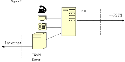 2、TSAPI技術(shù)標(biāo)準(zhǔn):由Novell公司開(kāi)發(fā)。它將程控交換機(jī)或中央電話系統(tǒng)與Netware網(wǎng)絡(luò)集成在一起?梢詫(shí)現(xiàn)呼叫轉(zhuǎn)移,交互式語(yǔ)音(IVR)和自動(dòng)呼叫分配(ACD)等功能。支持包括Windows各種版本、OS/2和Unix等目前主要操作系統(tǒng)。不同于TAPI ,TSAPI在計(jì)算機(jī)和桌面之間建立一個(gè)邏輯的連接,通過(guò)這些連接在任一端的TSAPI應(yīng)用就可以完成呼叫控制。由于TSAPI主要為Netware網(wǎng)操作系統(tǒng)增加電話服務(wù),不在每個(gè)電話和PC之間建立直接的連接,而是由一個(gè)電話服務(wù)器Netware可加載模塊(NLM)、一個(gè)電話服務(wù)器API(TSAPI)、一個(gè)電話服務(wù)器庫(kù)和一個(gè)電話客戶(hù)庫(kù)組組成在服務(wù)器電話系統(tǒng)間建立的連接,因此這個(gè)連接也稱(chēng)為PBX-To-Server連接。電話服務(wù)器 NLM是負(fù)責(zé) PBX和 Netware服務(wù)器間傳送信息的。電話服務(wù)器 API是為運(yùn)行于服務(wù)器上的應(yīng)用提供電話服務(wù)器API。三方連接在客戶(hù)--服務(wù)器組網(wǎng)中比單方連接有更大的靈活性。網(wǎng)上的每個(gè)用戶(hù)都可迅速地通過(guò)現(xiàn)有的LAN基礎(chǔ)結(jié)構(gòu)撥入PBX。對(duì)其他服務(wù)的接入,如主機(jī)或終端仿真、傳真、E-mail等,都可以通過(guò)CTI接口獲得,只要這些業(yè)務(wù)已經(jīng)存在于網(wǎng)上。結(jié)構(gòu)如圖: